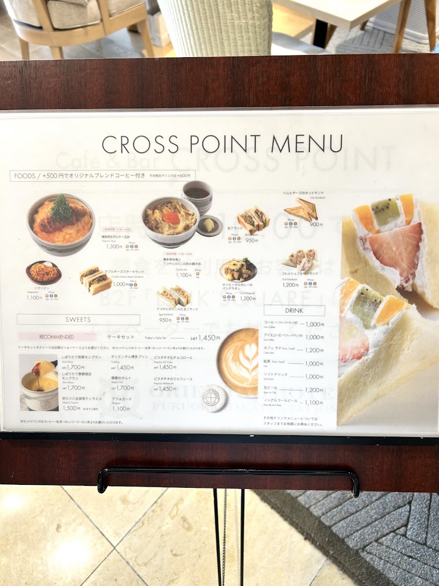 The menu at Cafe&Bar CROSS POINT offers a diverse selection of Western-style dishes, desserts, and beverages suitable for various dining occasions throughout the day. Guests can find options ranging from light meals and sandwiches to more substantial plates and a variety of desserts.